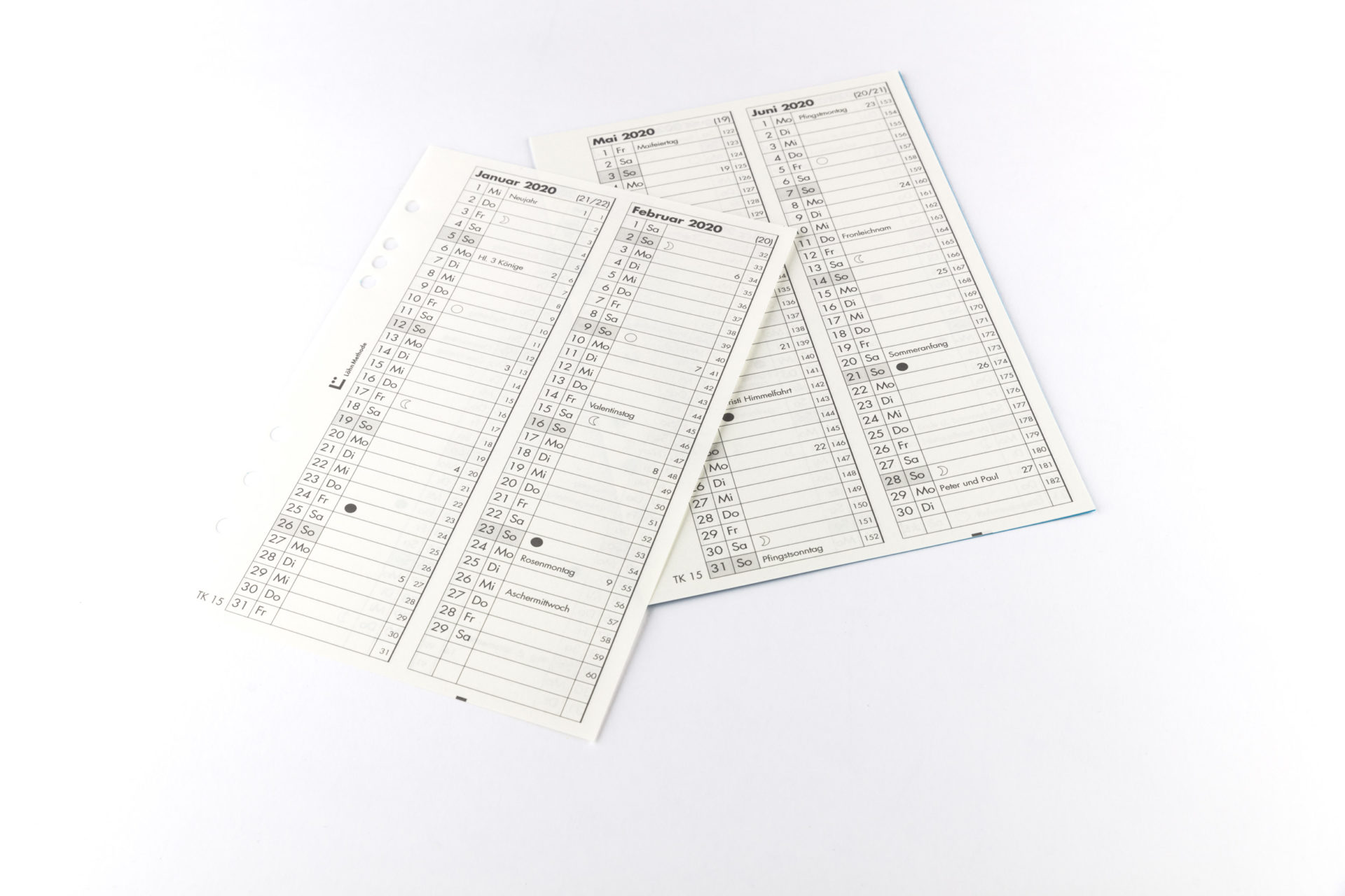 Er gleicht dem Kalender TK5 aus der Klassik-Serie A6-Format.